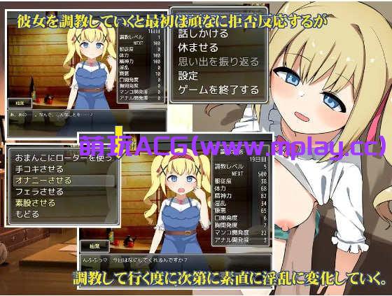 调教一位温顺而对性知识不了解的女主角。管理她的体力以防止她倒下,确保她不会因为讨厌而拼命逃跑。随着调教的进行,原本对性知识一无所知的女主角将成长为淫荡的泼妇。